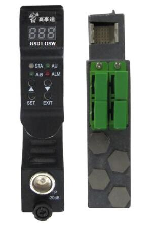 GSDT-OSW is a rack mount, A/B Style optical switch. It provides users monitoring and switching capabilities for fiber networks. The Model automatically switches from the primary optical source to the secondary optical source whenever the primary source is interrupted. The user can set the threshold criteria to decide when a switch occurs. After a switch has occurred, when the primary source again exceeds the user-defined threshold, normal (un-switched) operation is resumed. An alarm informs the user when either the primary or secondary input levels fall below the preset limit.
